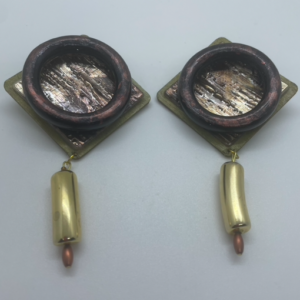 $15.00Bronze/Brown/Black square & circle with textured center hand painted, bronze