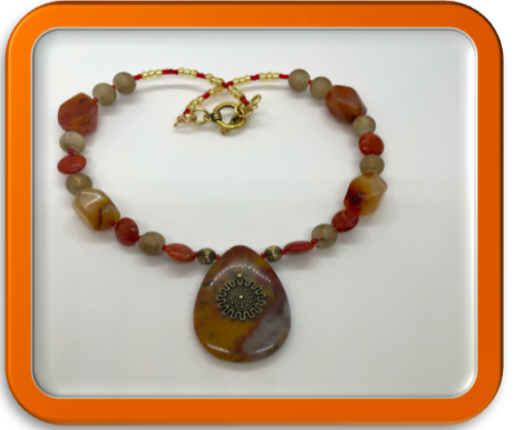Amber Agate necklace with a teardrop stone as the focal point. DTEN-77