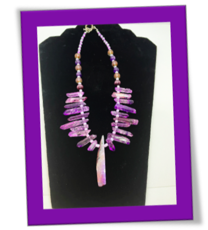 Only one word comes to mind when you see this piece, striking! Step into our world of creating your most gorgeous pieces yet with crystals, stones, and beads. In true JJBM fashion, the DTEN-74 pays homage to the powers of amethyst with these amethyst slices that were set off with amethyst and lilac beads. Amethyst is not only the birth stone of people born in February, it is renowned for its ability to help regenerate cells in the body, reduce anxiety and rid you of fatigues. This all-purpose stone promises to be an amazing buy whether you are using it for your personal consumption or as a gift to someone in your life. Pierced or clip-on available.