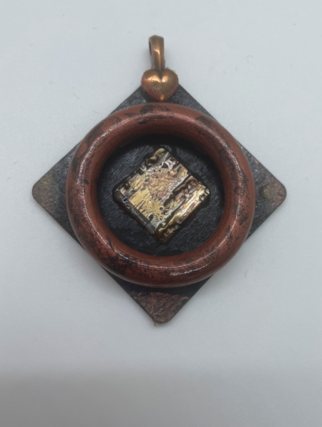 Be the first to review “Bronze/Brown/Black square & circle with textured center hand painted, bronze”