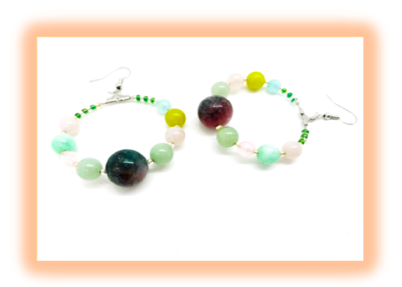 What better way to welcome summer is there than in pastel colors? Enjoy all the soft allure the DTEE-72 offers. We thought the best way to highlight these beads was to show each one off, so we carefully designed this piece in a hoop form. This earring features pastel glass beads that all seem to pay homage to the precious agate bead in the center. The arrangement was made in such a way that the pastel glass beads add flair to the centerpiece while also maintaining their roles in making the whole look come together. Pair this piece with those stunning sundresses you’ve set aside to rock all summer and jet out on a fun road or beach trip with your friends! DTEE-72 pairs very well with a matching necklace DTEN-72 (sold separately). Pierced or clip-on available.