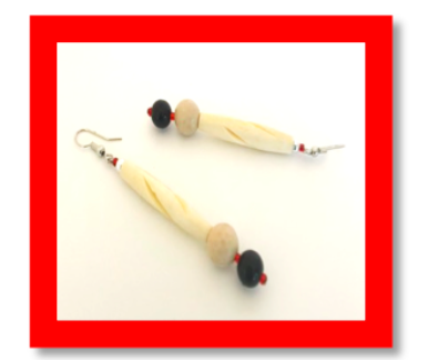 This is surely one for the books with anyone who loves to collect accessories! The TRBE-2 is a statement tribal piece from start to finish. This piece predominantly sports a tabular bone and attached to the ends in a sandwich fashion are cream and black glass beads with red and silver beads. If you are looking for that little zing or spice, this is one that promises to deliver on all fronts. We like to create pieces that speak to our customers on multiple levels. We go beyond creating earrings to giving you an experience and connection with your roots. If you have a culture lover in your life, this is one piece that will strike a chord with them. Pierced or clip-on available.